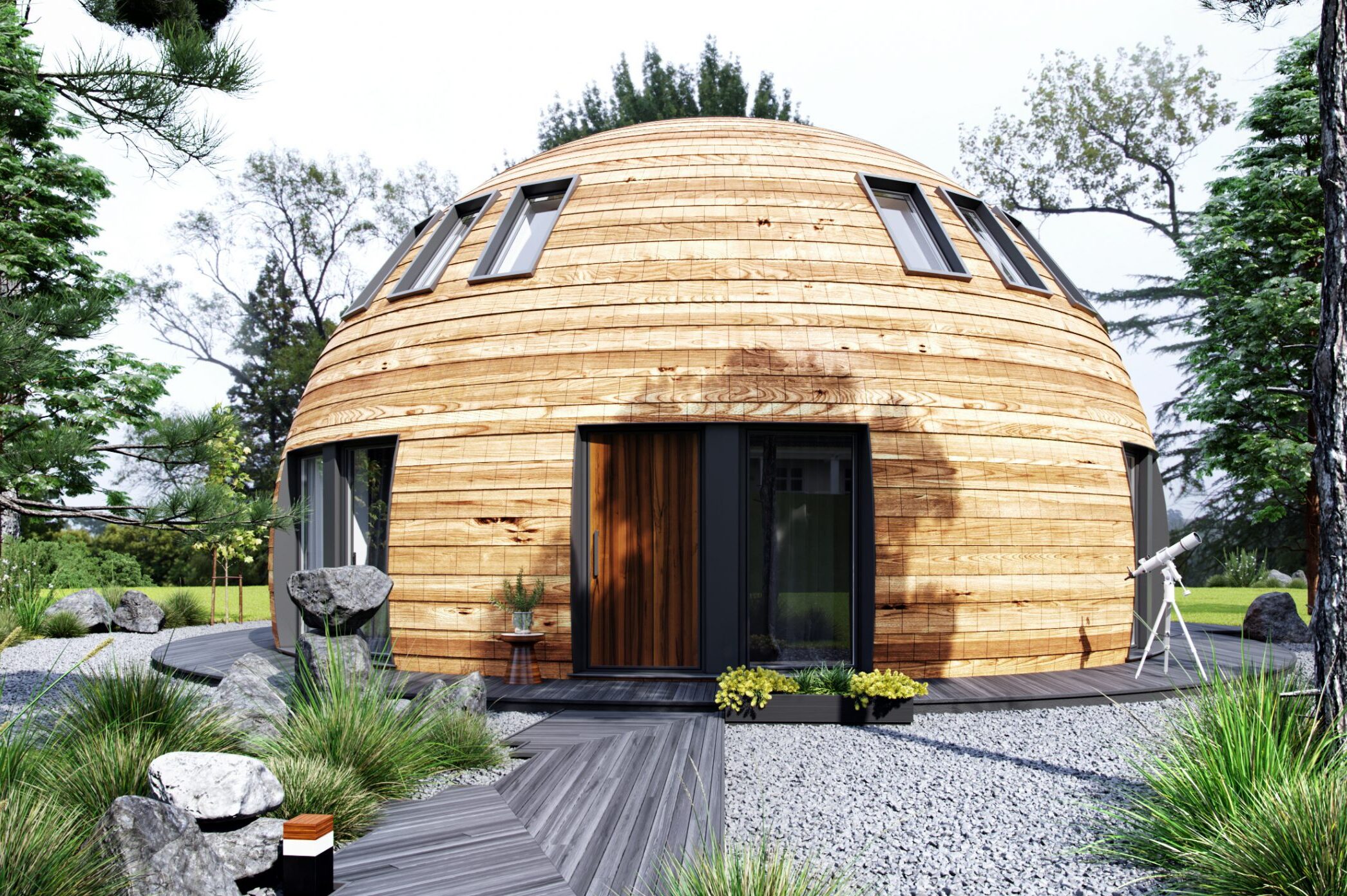 All materials used in the Oxygen Domes are eco-friendly, zero VOC, and resiliant against the elements. The walls are also infused with smart minerals that create clean living spaces free from mold and airborne contaminents.